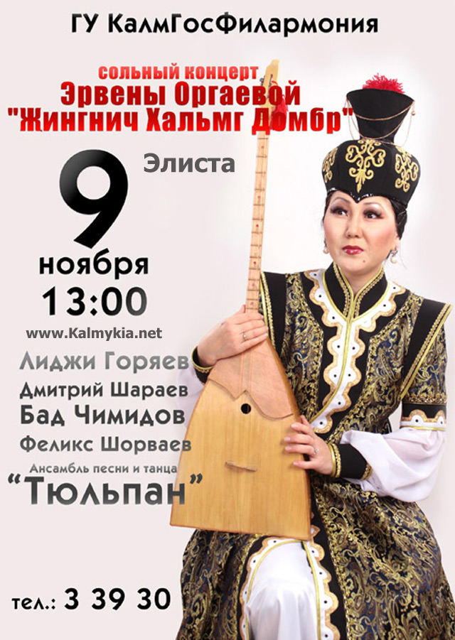 9 ноября в городе Элиста состоится концерт Эрвены Оргаевой! [ En | De | Es | It | Fr ]