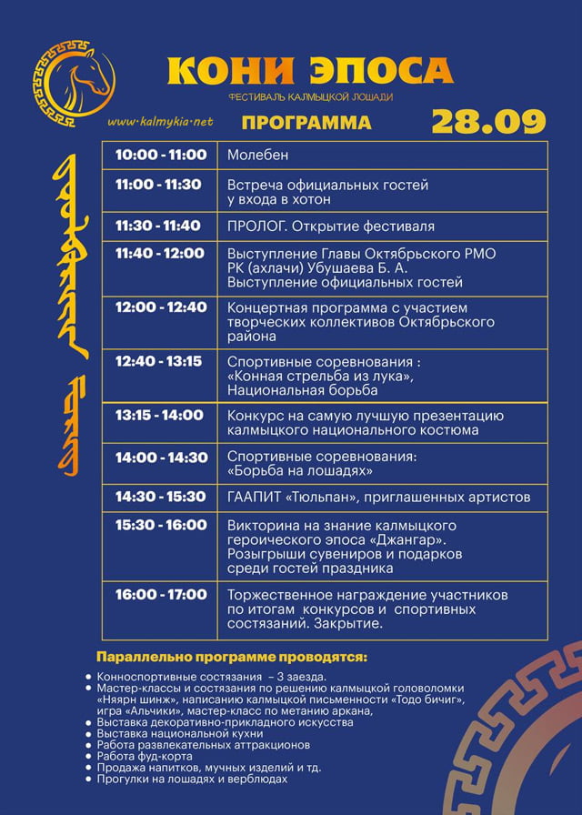 Фестиваль лошадей калмыцкой породы «Кони эпоса»: Программа